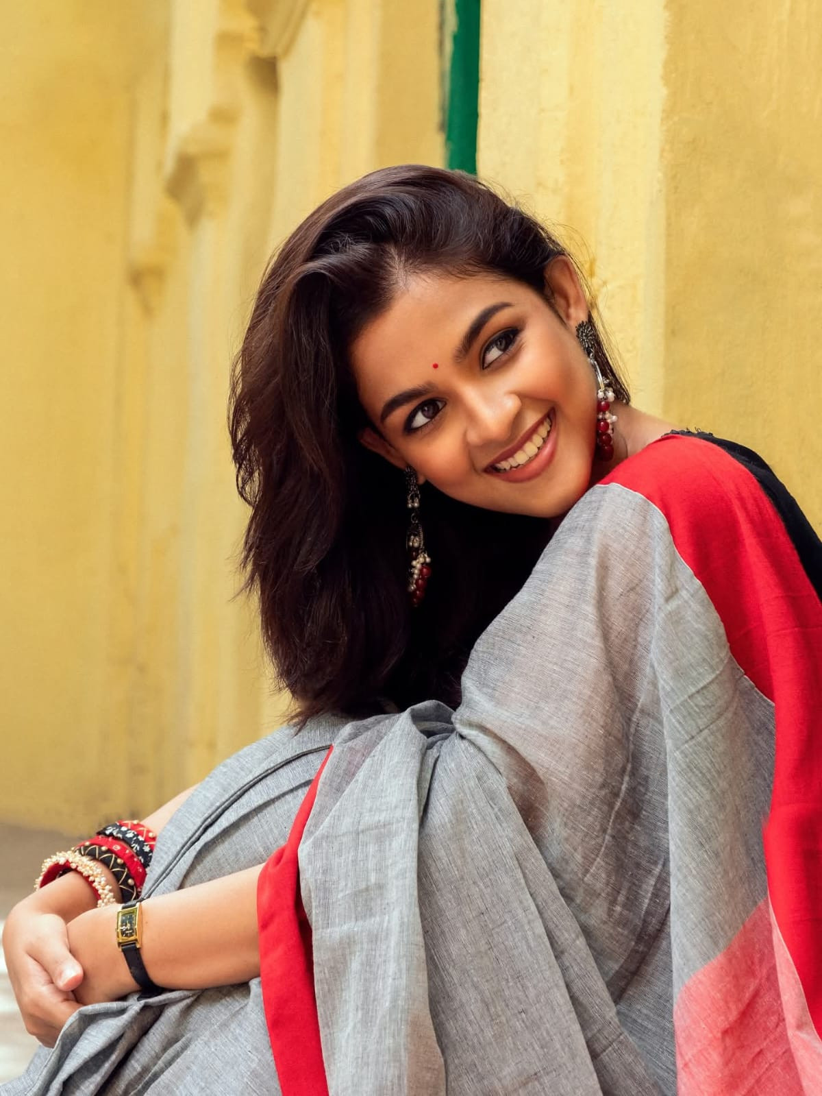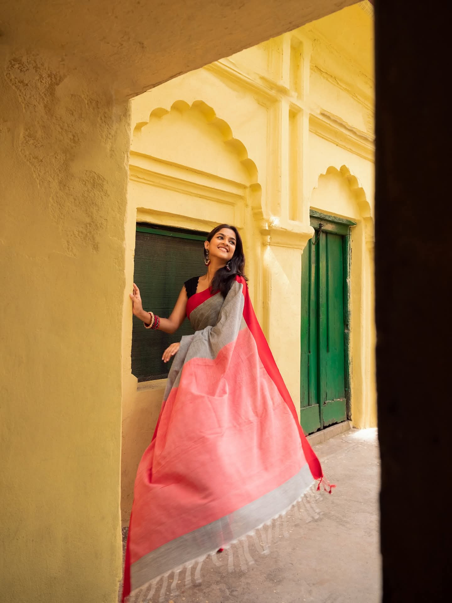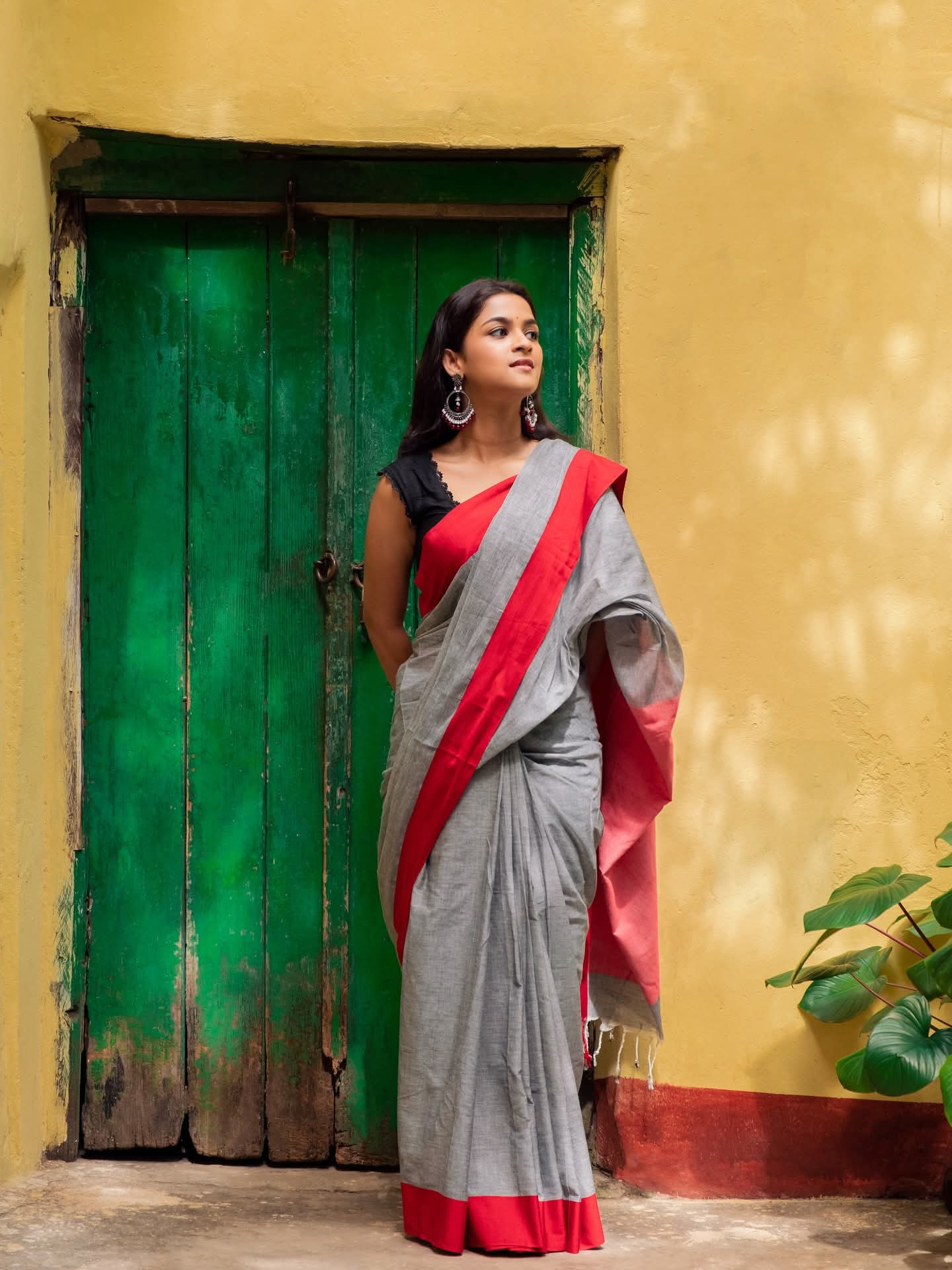 অ্যাশ রেড প্রিমিয়াম কটন শাড়ি-