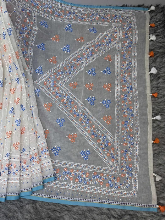 ✨ এম্বোস প্রিন্ট সিল্ক কটন মিক্সড শাড়ি ✨
