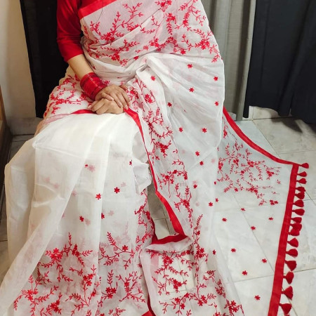 হাফসিল্ক এম্বোডাইরি শাড়ি।
