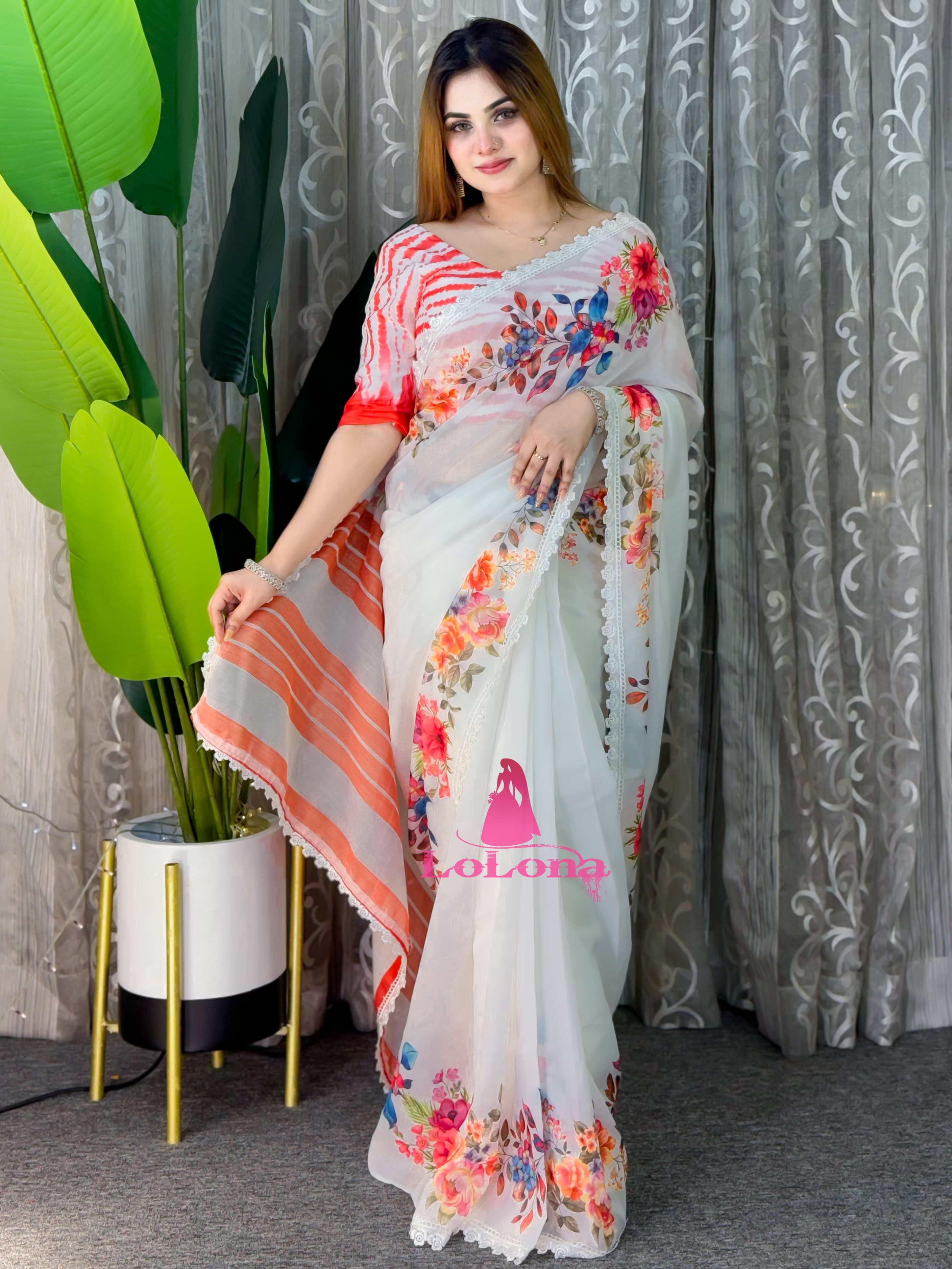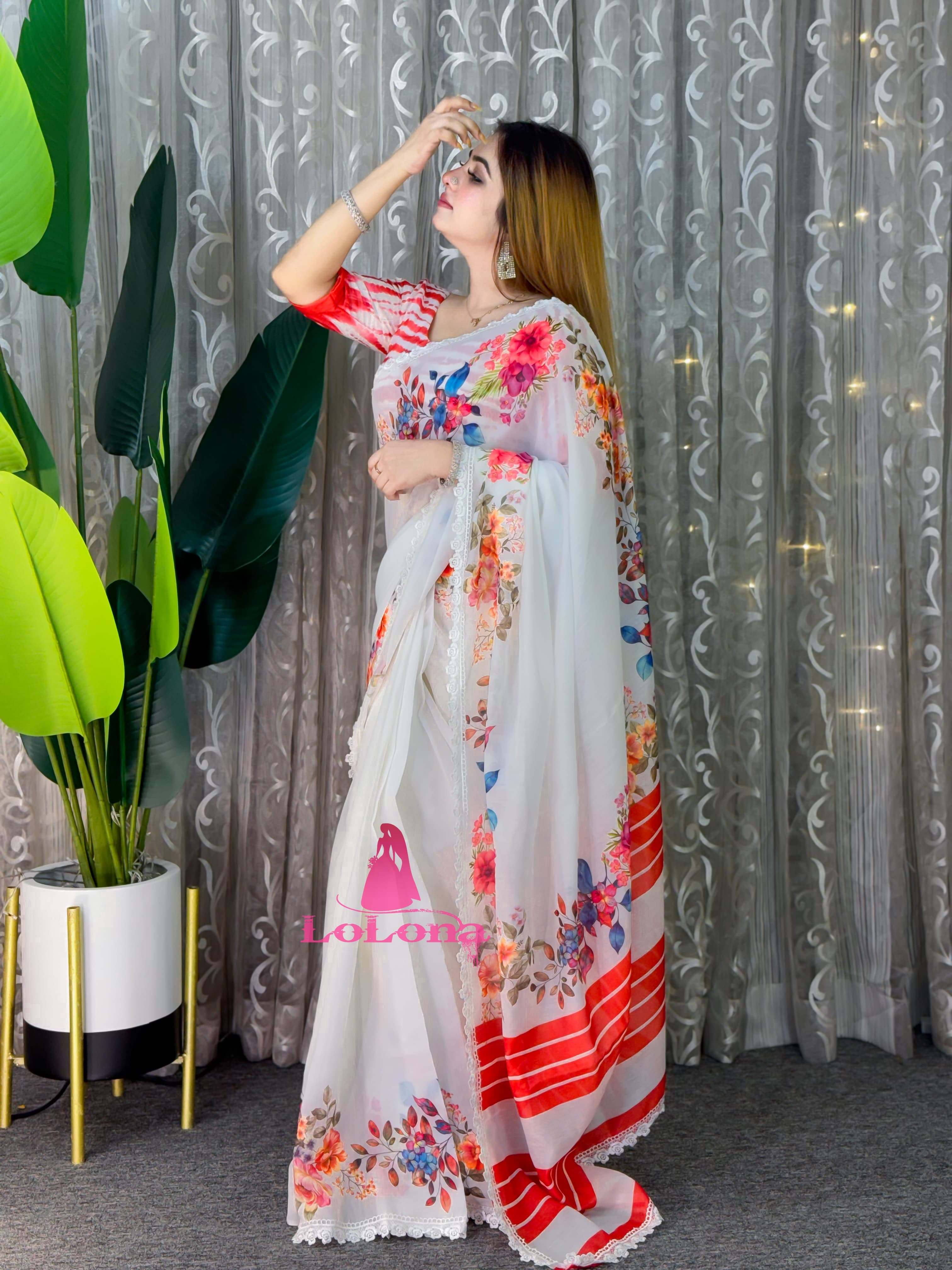 ফ্লোরাল ডিজিটাল প্রিন্ট ওয়াসিস জারি শাড়ি আপনাকে দেবে ক্লাসি ও গ্ল্যামারাস লুক!