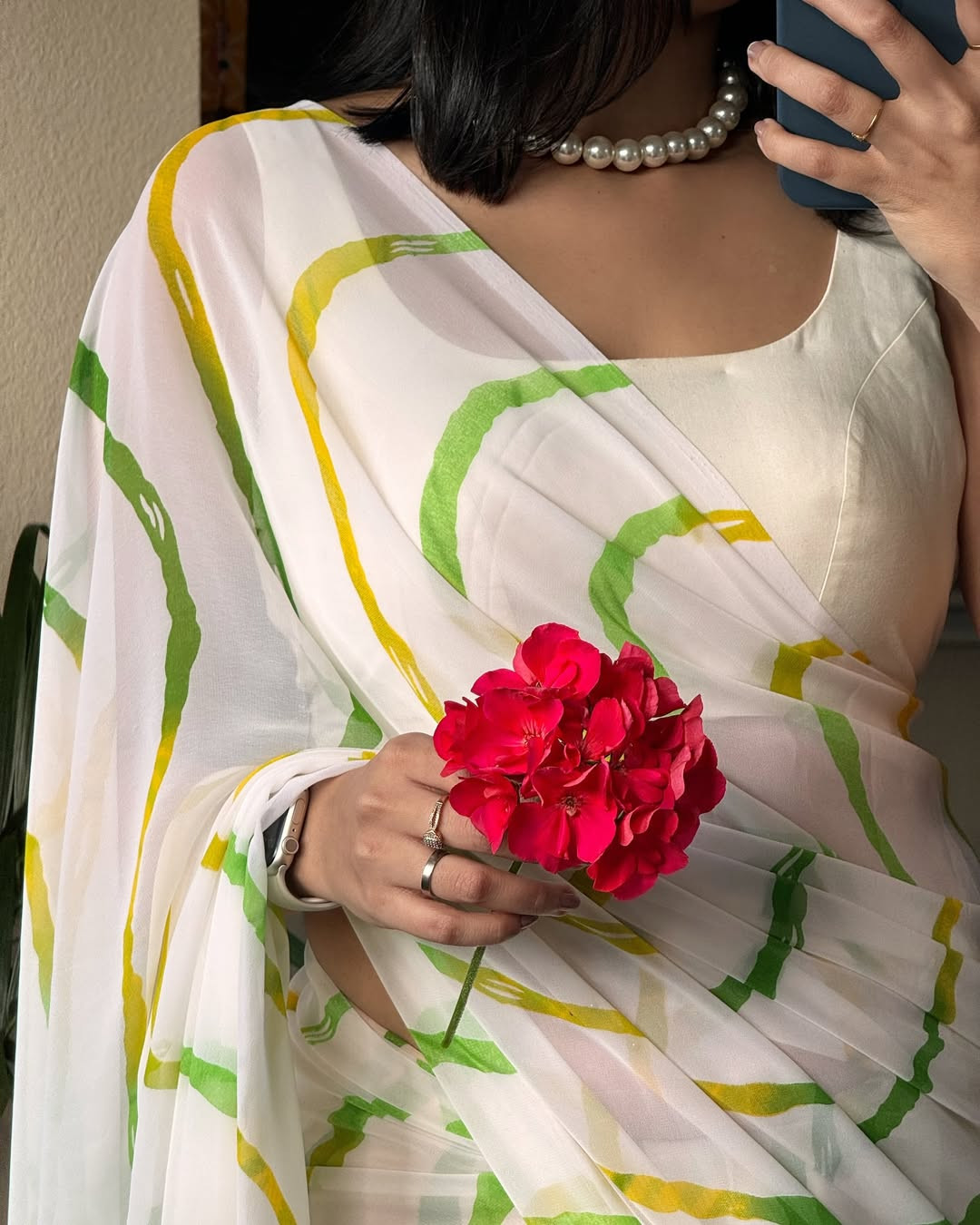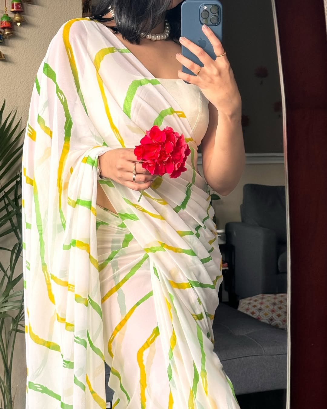 জর্জেট শাড়ি, ডিজিটাল প্রিন্ট করা। ১২ হাত শাড়ি, ব্লাউজ পিস নেই। নরমাল ওয়াশ, আধুনিক ও রুচিশীল ডিজাইন। ডেলিভারি চার্জ ঢাকার মধ্যে ৮০ টাকা, ঢাকার বাহিরে ১৫০ টাকা। ঢাকা সিটির বাইরের অর্ডার এর ক্ষেত্রে ২০০ টাকা অগ্রিম প্রযোজ্য।